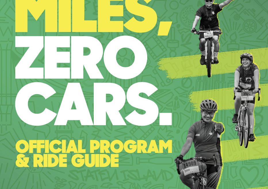 Click on the image below to download a PDF of the 2022 TD Five Boro Bike Tour Official Ride Guide and Program, which has essential information for riders, news from Bike New York, and more.