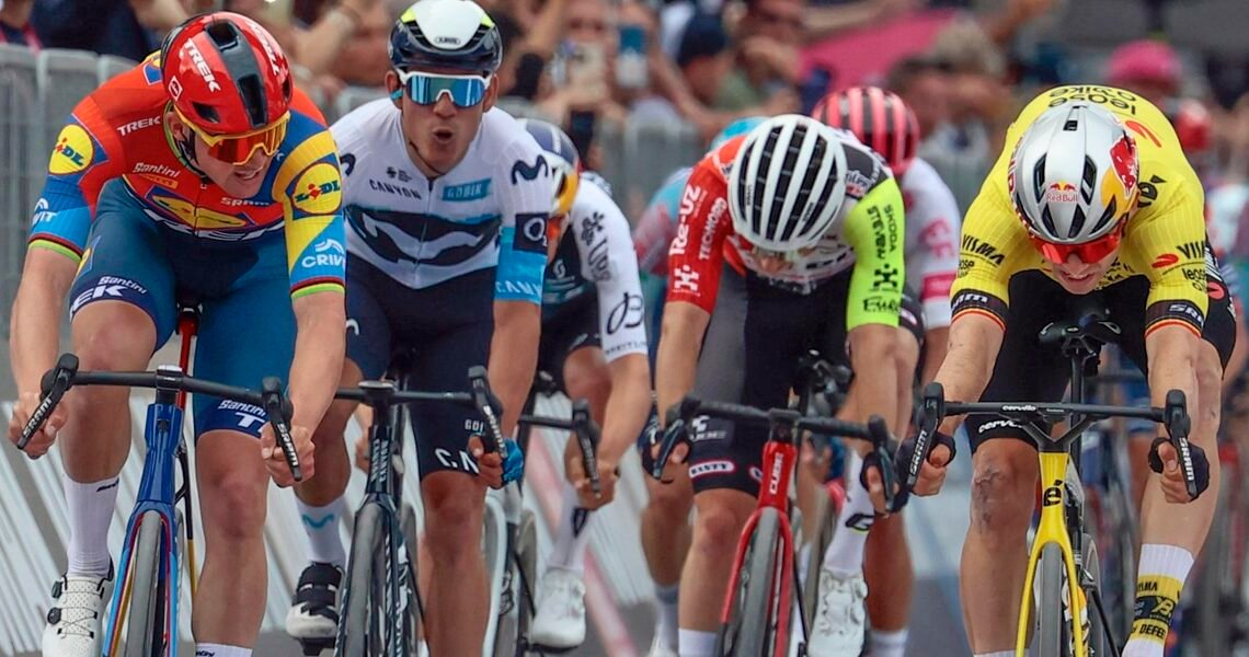 Giro d’Italia Stage 1 Race Report: The Giro d’Italia started with a stage win for Mads Pedersen (Lidl-Trek). The Dane beat Wout van Aert (Visma | Lease a Bike) in the sprint from a thinned out lead group. Mikel Landa, one of the GC favourites, crashed hard in the finale. Pedersen took the first leader’s pink jersey.