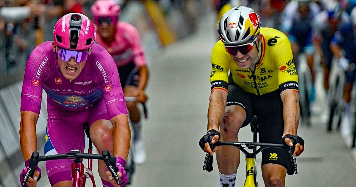 That battle of those three turned into a duel between Pedersen and Van Aert. The Dane was the first to start his sprint, but Van Aert pulled himself back to his rear wheel. It looked like Van Aert had the power to pass Pedersen, but the Belgian fell short just before the finish. After that thrilling sprint, Pedersen crossed the line first to take his fourth stage win in this Giro. Van Aert was second and Del Toro third. The Mexican remains the overall leader with a few more seconds added.