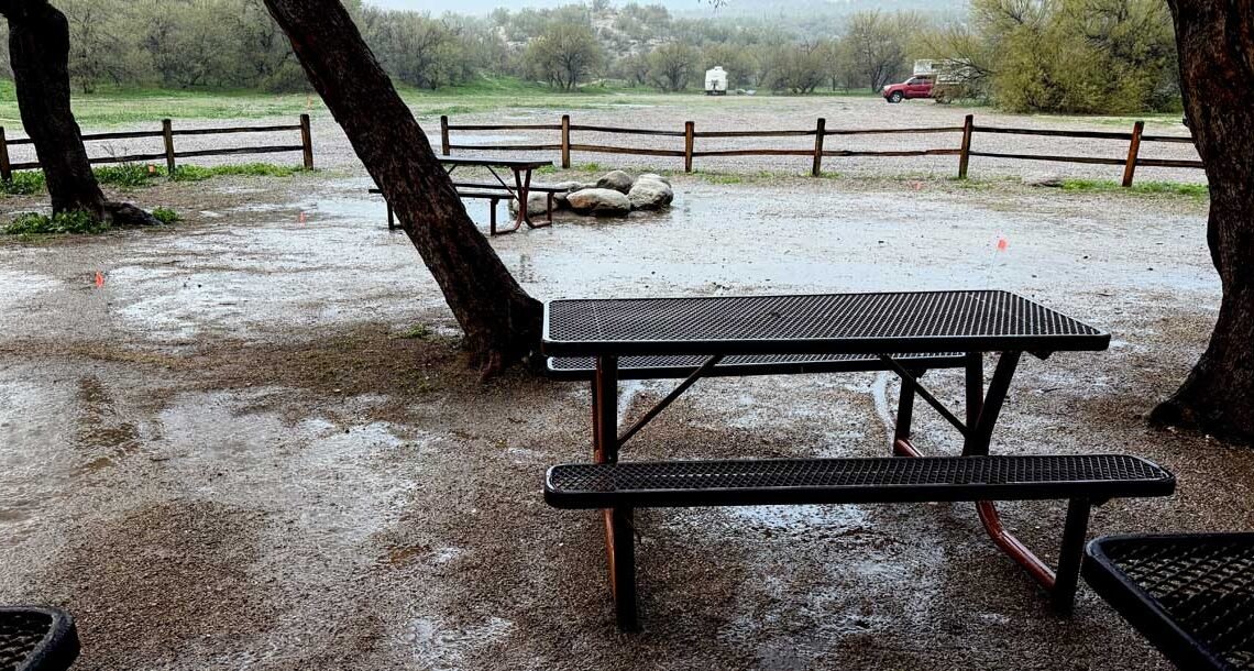 The rainwater surrounded two lone trees in the Flycatcher Group Area parking lot like an island in a desert ocean. That was two nights before the Jubilee in the Desert kicked off at Catalina State Park near Tucson, Arizona in January, 2026. Campers who arrived early for this once in a lifetime celebration hunkered down as the ground was no longer absorbing the sudden deluge. Cyclists from across the country were gathering to celebrate 50 years of the landmark bike travel event Bikecentennial, crossing the United States in 1976 on the newly christened 4200 mile Trans America Bicycle Route.