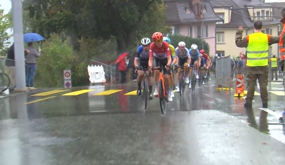 Each road race route of the 2024 Worlds included some combination of the circuit around Lake Greifen and the 26.8-km circuit that took in the east side of Lake Zurichsee and contained the 1.4-km, 7.2-percent Wilikon climb, with a connector between them. The U23 men’s race consisted of one Lake Greifen loop and four Lake Zurich loops for a total of 173.6 km. It was another day of nasty rain.