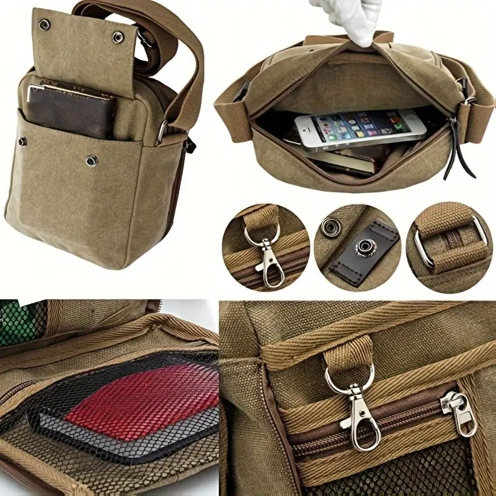- Multi-Pocket Storage: Features a range of compartments, including secure zippered pockets and pouches, perfect for storing your wallet, keys, phone, and other daily necessities.