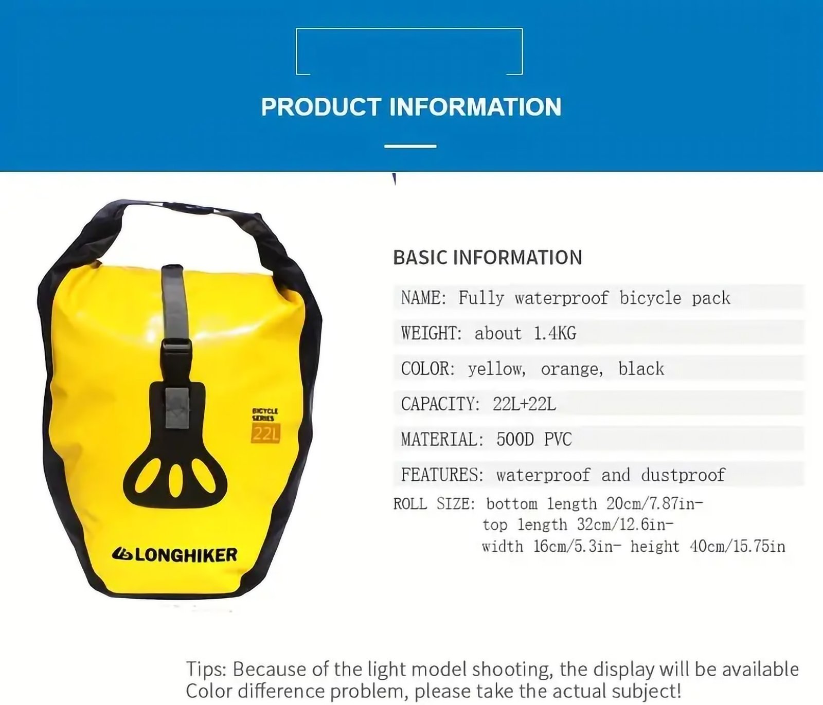 Upgrade your cycling adventures with the Waterproof Bike Pannier Bag, in bold Yellow and Orange. Whether you’re a casual cyclist or a dedicated rider, this versatile pannier bag offers ample storage, durability, and reliable protection from the elementsβmaking it a must-have for any biking journey.