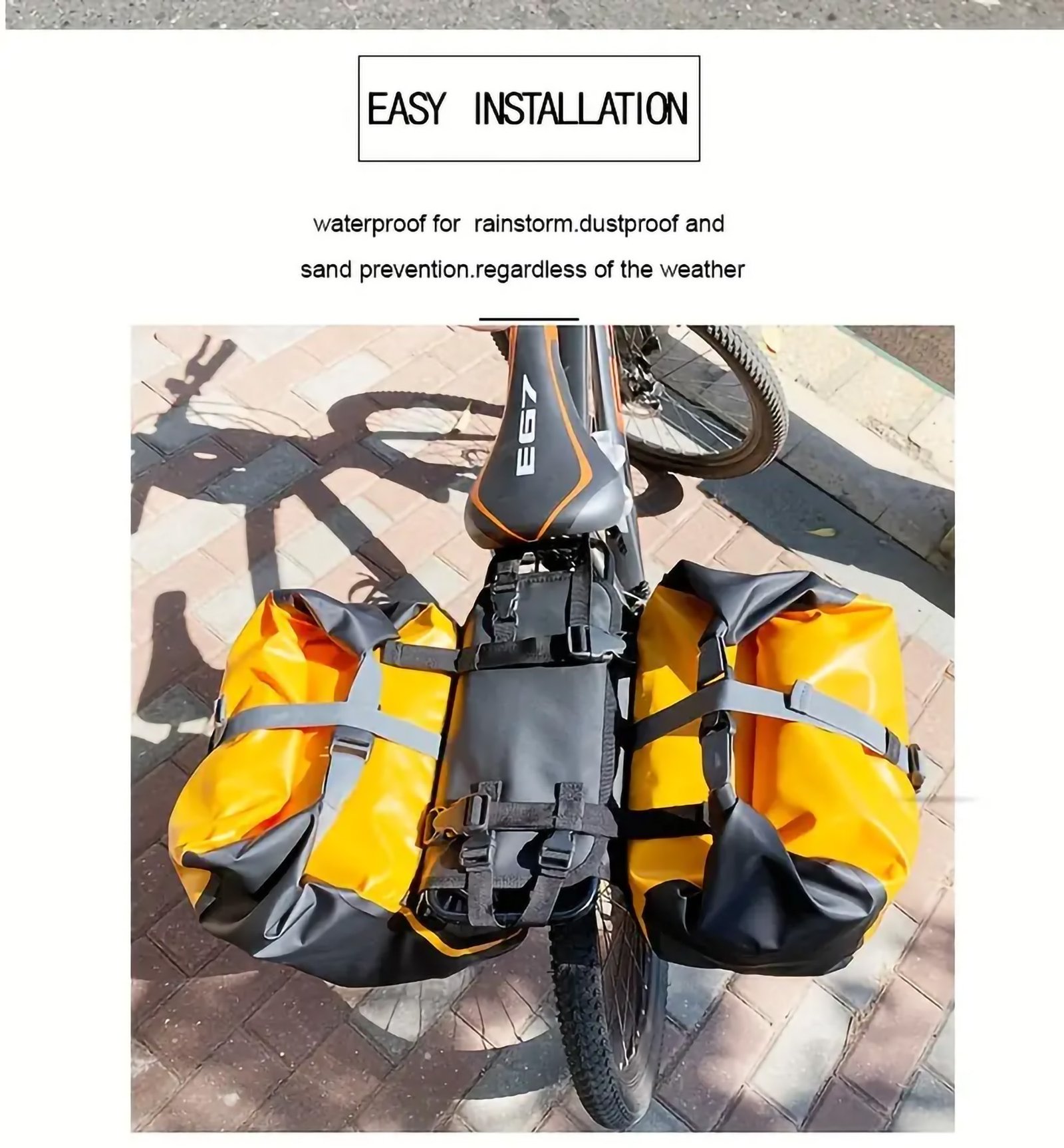 Available in vibrant Yellow and Orange, the Waterproof Bike Pannier Bag adds a pop of color to your bike while ensuring your gear stays dry and organized. Whether you’re cycling through the city or exploring new trails, this bag is your reliable companion for every adventure.