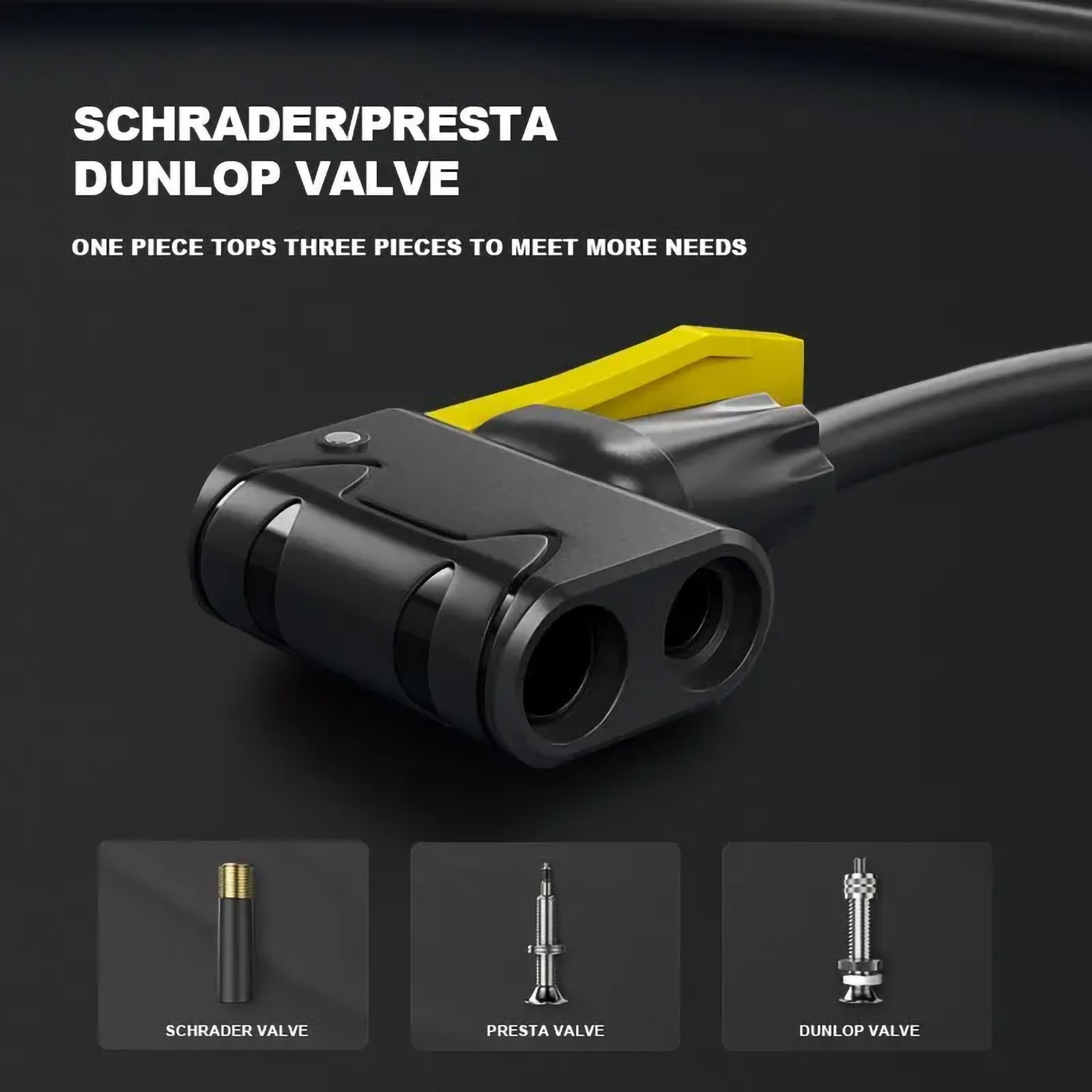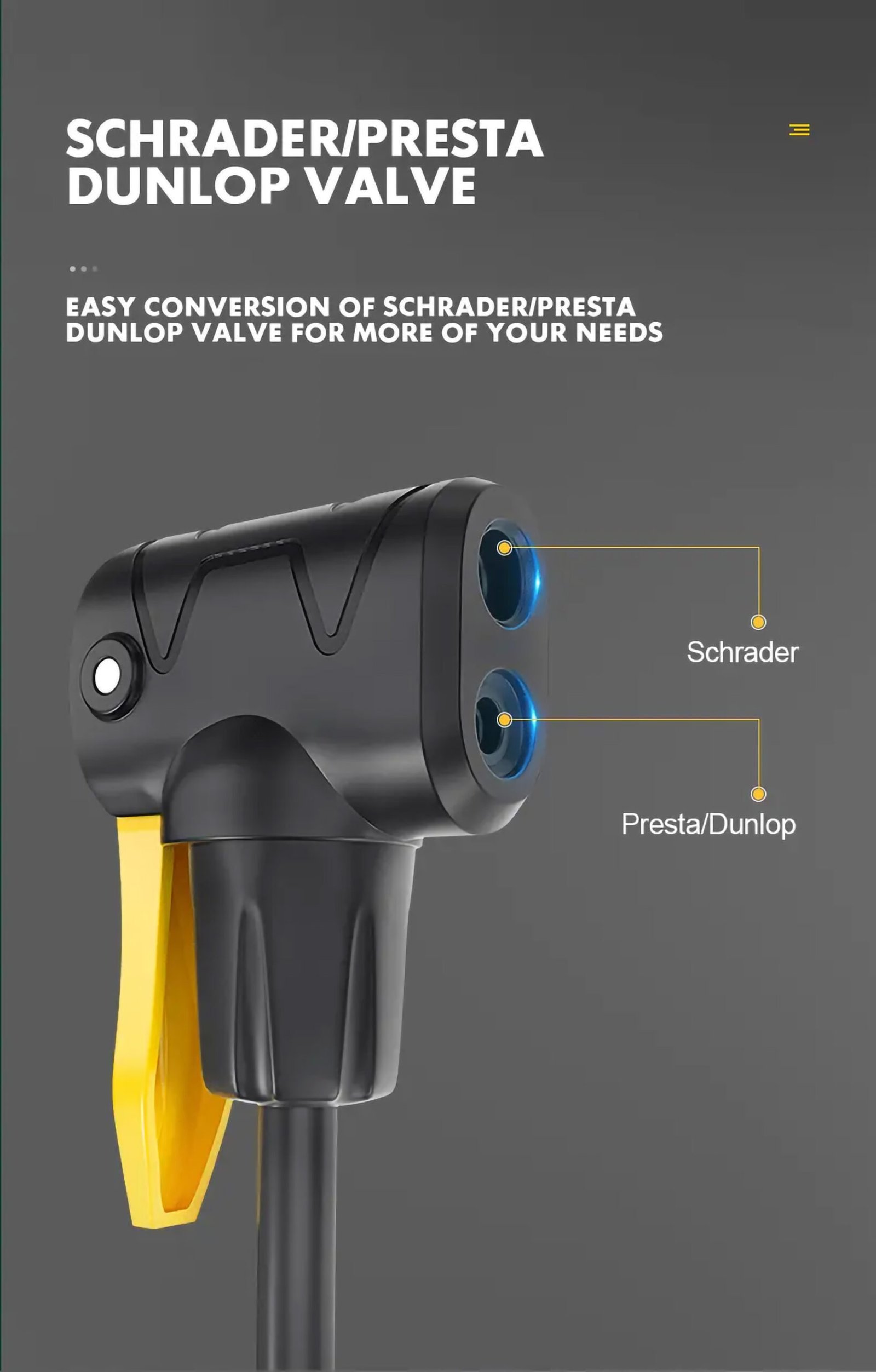 - Dual Valve Compatibility: Designed to fit both Presta and Schrader valves without the need for adapters, making it convenient and hassle-free to use on various bike types and other inflatables.