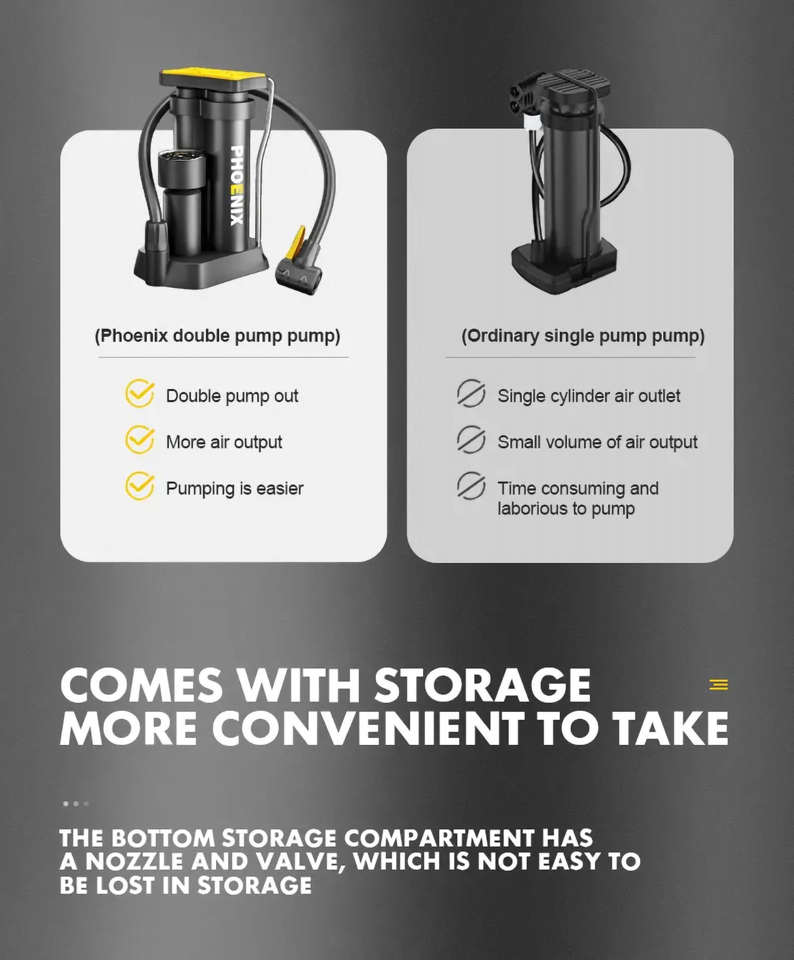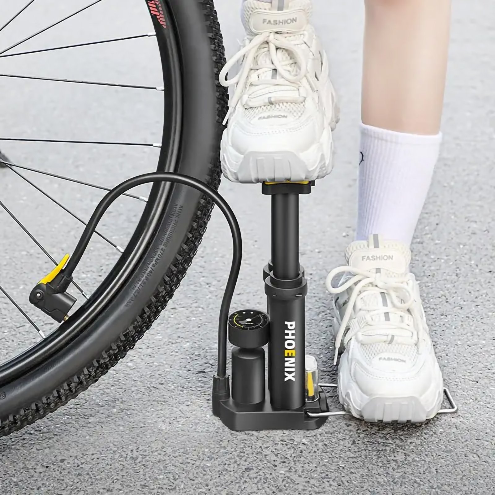 Experience ultimate convenience with our Compact & Portable Bike Foot Pump, the perfect tool for versatile and efficient inflation across a wide range of needs, including bikes, scooters, cars, and sports balls.