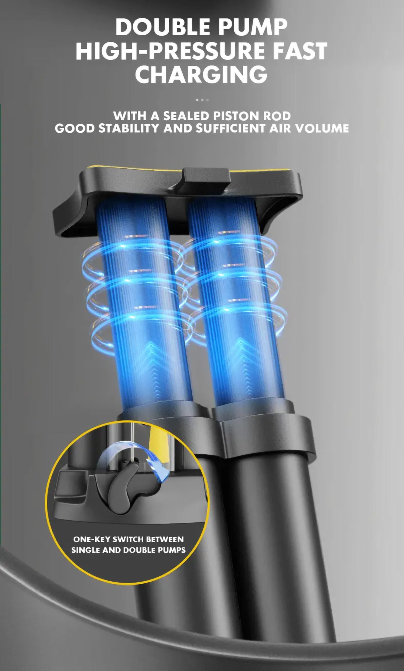 - Double Cylinder Design: This pump is equipped with a double cylinder, providing powerful and efficient inflation that allows for quicker pumping with less effort compared to single cylinder pumps.
