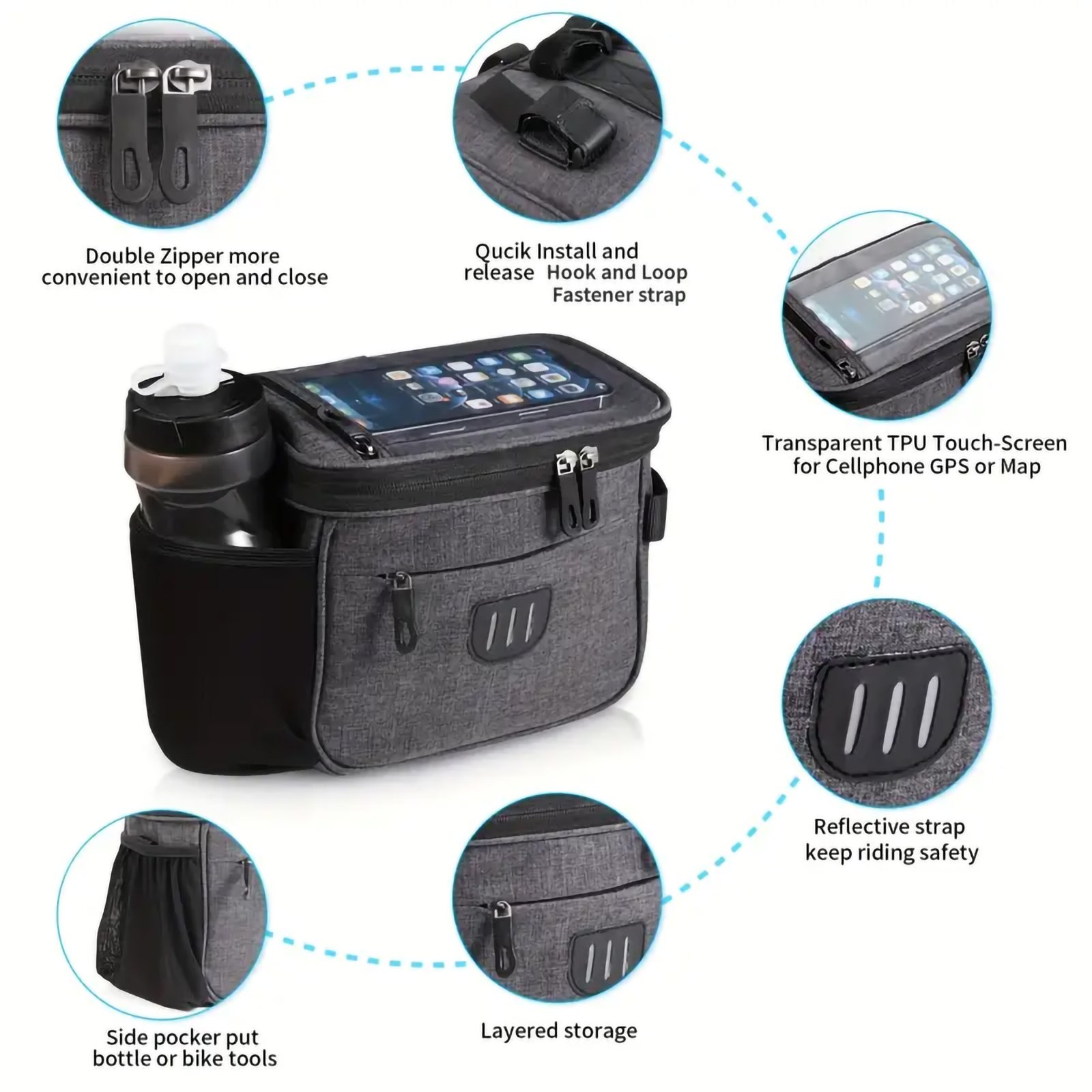 - Versatile Use: Suitable for road bikes, mountain bikes, and electric bikes, this handlebar bag is ideal for commuting, touring, or leisurely rides, offering convenience and functionality.