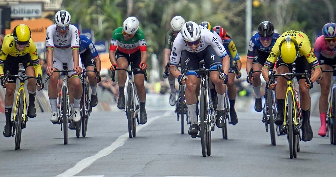 Race Report: Lorena Wiebes SD Worx-Protime) won the women’s Milan-San Remo. The race ended in a sprint from a thinned peloton, after Lotte Kopecky pulled in the escaped Elisa Longo Borghini (UAE ADQ). Wiebes was then the fastest in the sprint, beating Marianne Vos (Visma | Lease a Bike) and Noemi Rüegg (EF Education-Oatly).