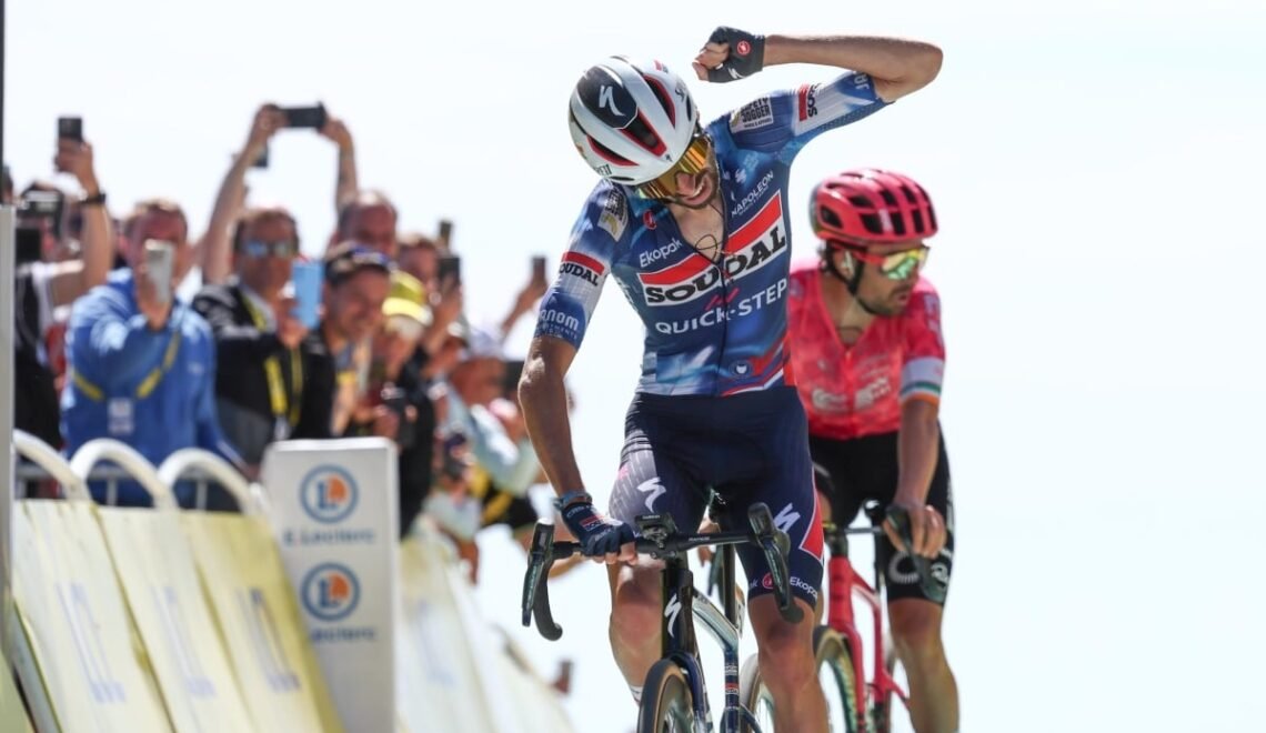 Van Wilder had been dropped right at the start of the climb but paced himself all the way up, to somehow catch the leaders in the last kilometer! Van Wilder then did an altitude lead-out for Paret-Peintre for the sprint but it was Healy who jumped first with 200m to go but coming around the last bend, Paret-Peintre made his move and he was just too fast for Healy in the sprint. A superb attacking and gutsy ride by both riders but only one could win with Healy at least getting the consolation prize of moving up a little in GC.