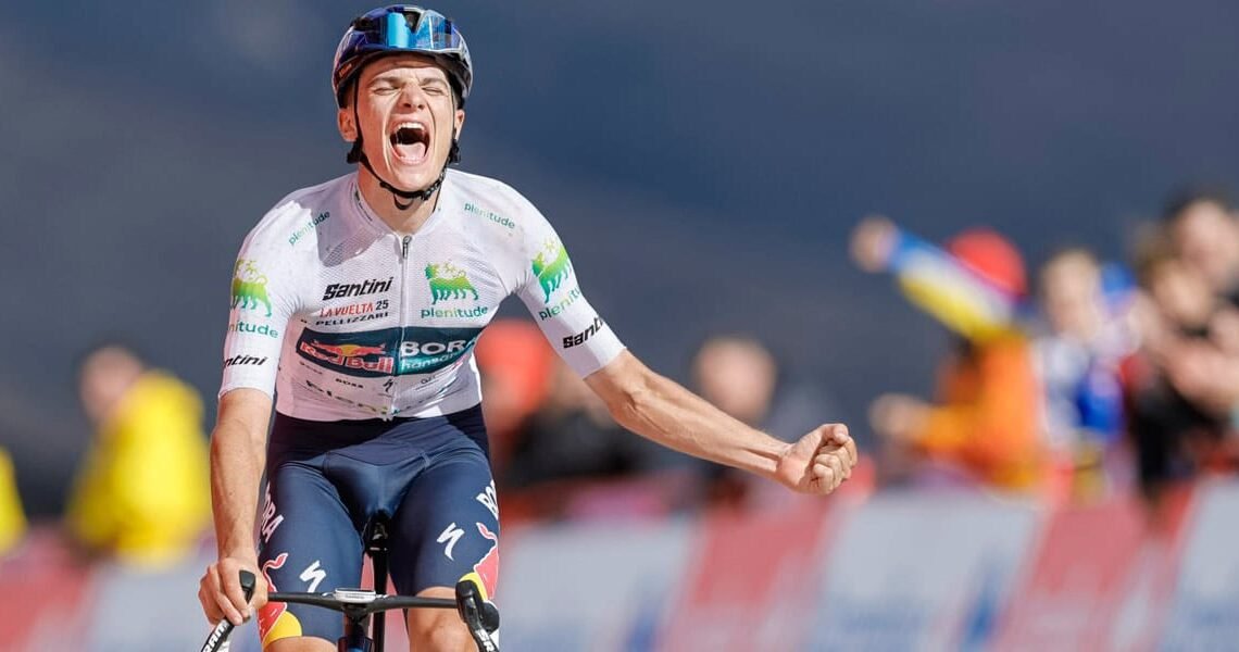 Clad in the white jersey, Giulio Pellizzari opened his professional victory list in spectacular fashion by conquering the Alto de El Morredero on day 17 of La Vuelta 25. Two and a half months before his 22nd birthday, the Italian climber is the youngest stage winner in the Spanish Grand Tour since Tadej Pogacar’s first victories in 2019. Red Bull-Bora-Hansgrohe set a strong pace on the brutal final climb, and after a couple of accelerations from Jai Hindley to shake up the GC battle, Pellizzari counter-attacked inside the last 4 kilometres. He ultimately claimed victory ahead of Tom Pidcock (Q36.5) and Hindley, while Jonas Vingegaard (Visma-Lease a Bike), 4th on the day, retained La Roja with a 50-second gap over Joao Almeida (UAE Team Emirates-XRG).