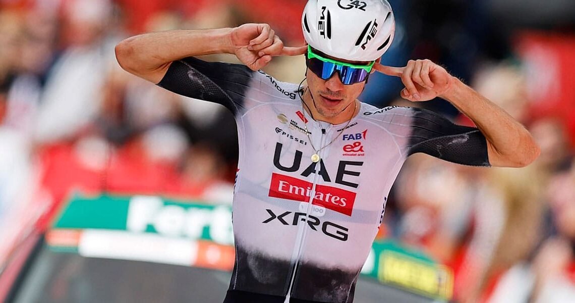 Juan Ayuso rode to the third straight win for his UAE Team Emirates with a ball-busting two fingers up to all who wrote him off after yesterday’s meltdown. The 22year-old “co-leader” of UAE was the first to attack with some 175km to go, then went on to ride the final kms solo and a great victory salute at the summit finish in la Magia.